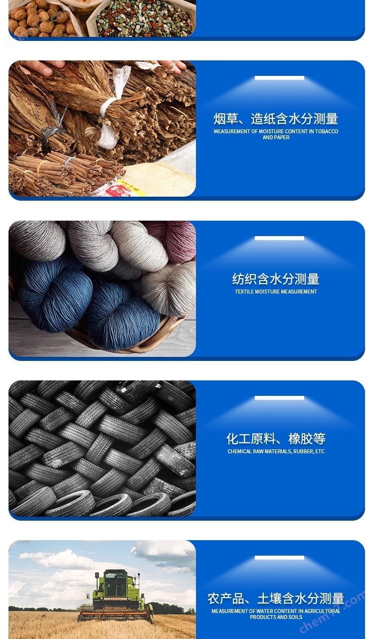 化學工程:測定化工產(chǎn)品和原材料的水分含量,確保產(chǎn)品的純度和質(zhì)量。 質(zhì)量控制:在生產(chǎn)和加工過程中監(jiān)控水分含量,以確保產(chǎn)品的穩(wěn)定性和一致性。 實驗室研究:進行各種化學實驗中的水分分析,支持研發(fā)和工藝改進。